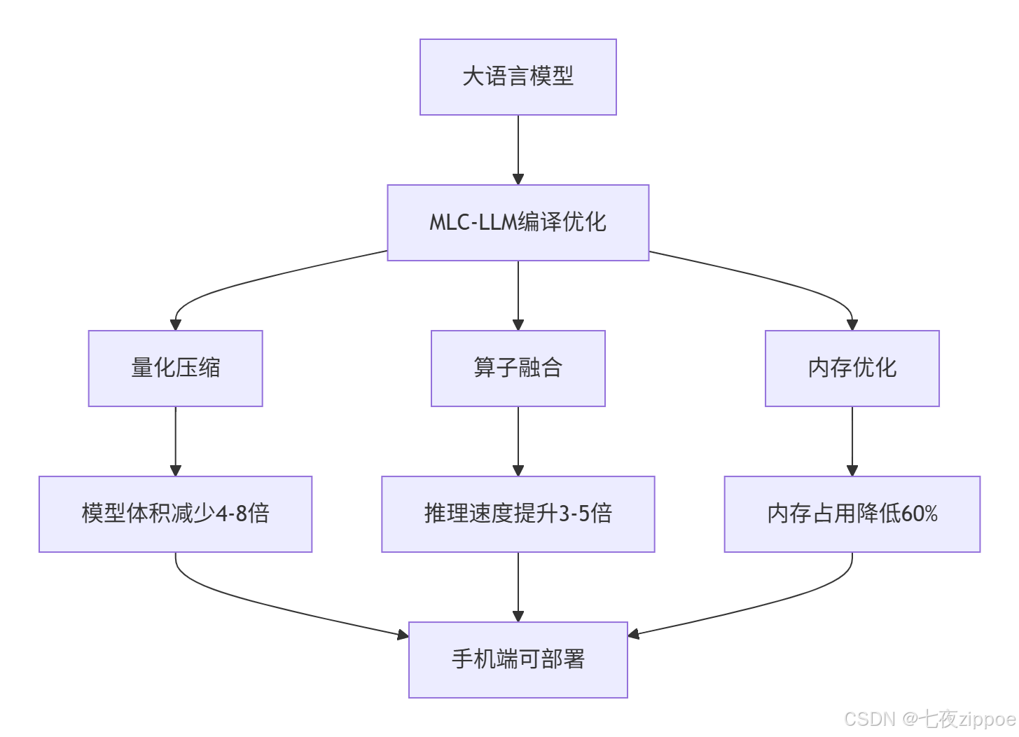 MLC-LLM采用**分组量化(Group-wise Quantization)**技术,相比传统逐层量化,在相同精度下可进一步压缩30%模型体积。