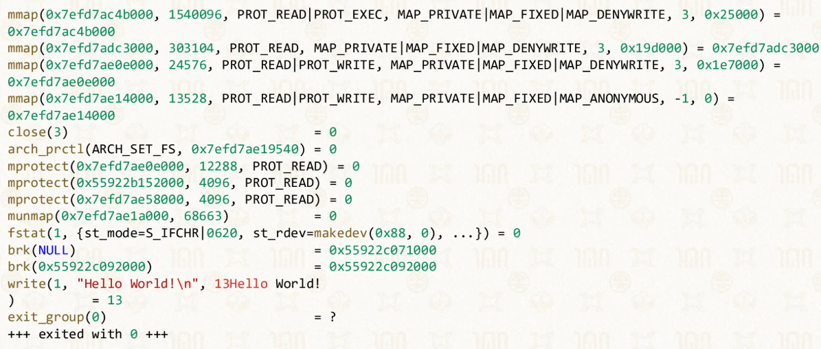 ➢ hello 这个可执行文件是如何将"Hello World!"这行字输出到屏幕?