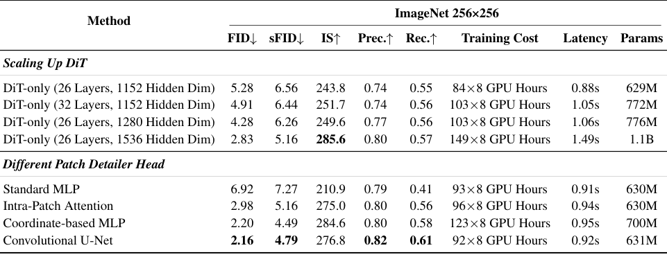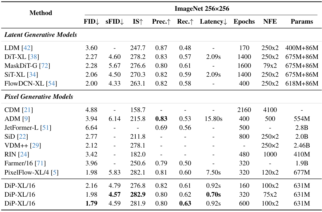 这使得DiP在像素空间的计算开销直接降低到了与潜在空间模型(LDMs)相当的水平。