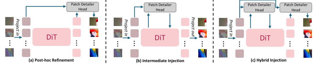 由于处理的是大图像块,DiT输出的图像在细节上必然是模糊的。