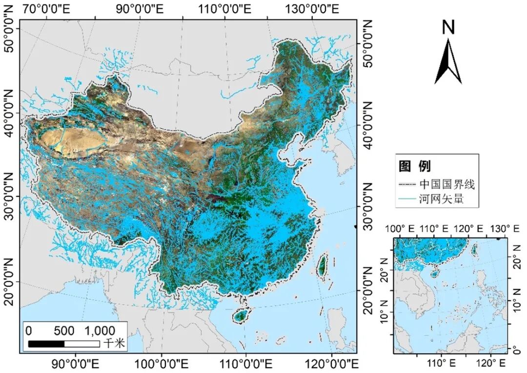 图2 本数据集包含的全国河网矢量数据展示图(2020年)