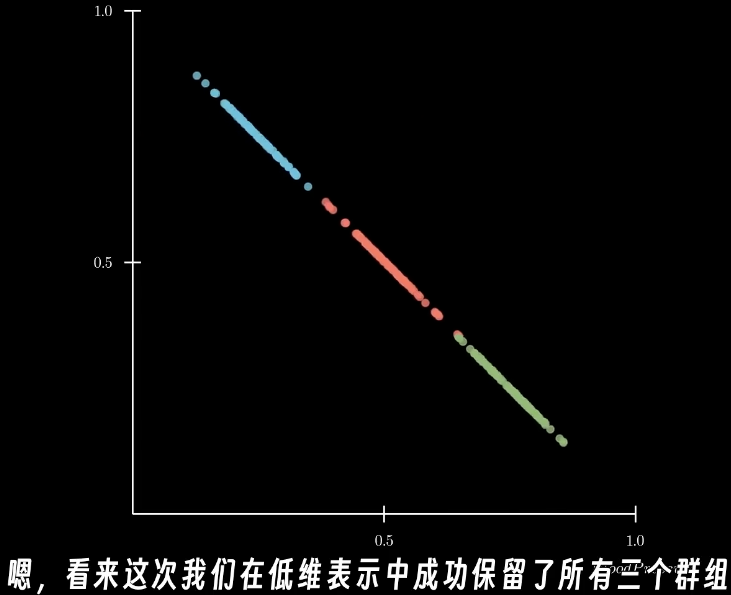 而投影到主成分上时,低维的数据还是保持了高维度的可区分性