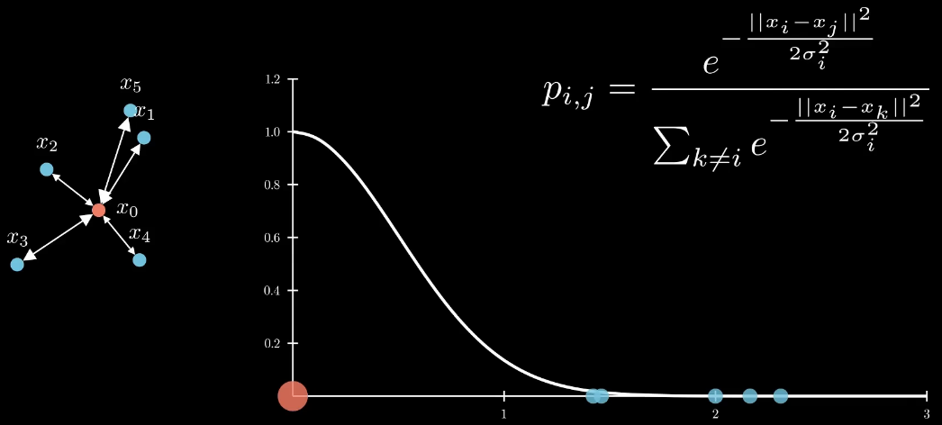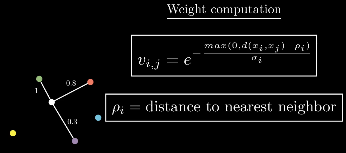 得到最近的几个点之后,通过下面的公式来计算距离权重(类似SNE),rou参数的目的是让最近的点的权重为1