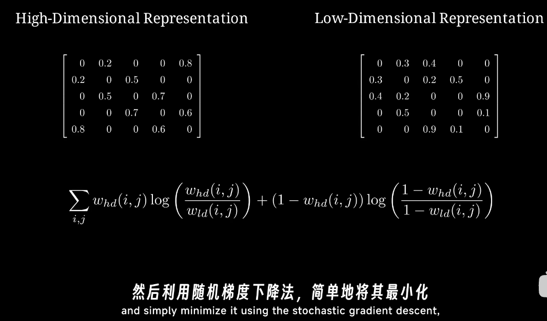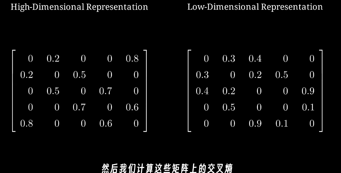 最后通过优化高维空间和低维空间的加权图矩阵的距离来实现低维表示