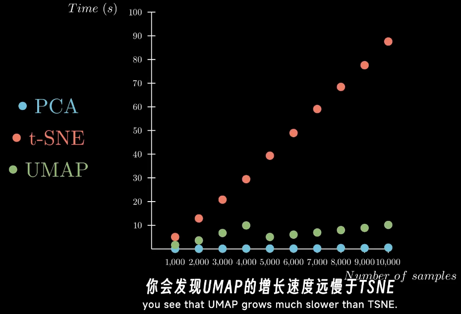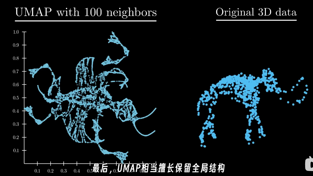 UMAP的速度比t-SNE快得多,并且效果更好,而且可以更好的保留全局的结构