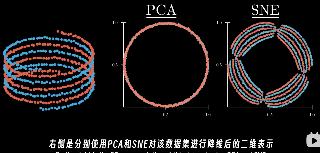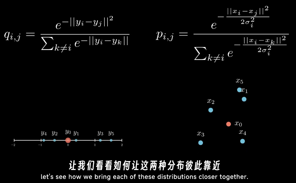 SNE的思想:在高维度中的数据之间的距离,在低维度的表示中也应该保持相似