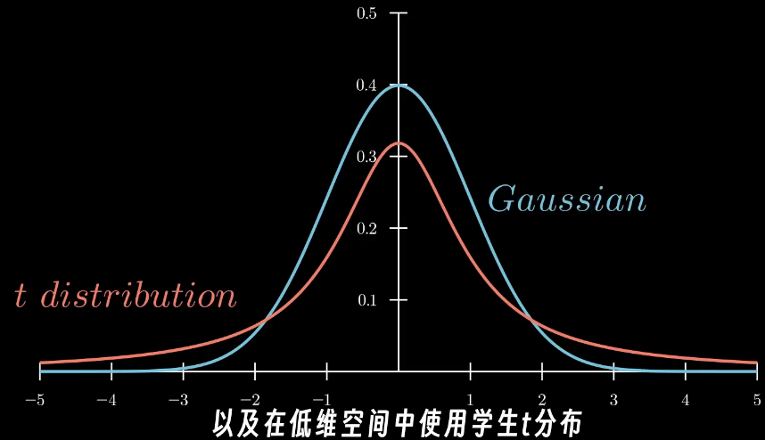 因此t-SNE调整了分布,在低维空间中使用t分布