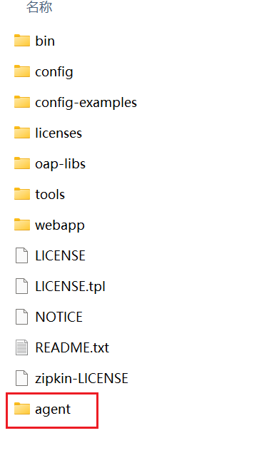 将刚才解压的 agent 包的全部内容(如下图),剪切到创建的 agent 文件夹下。
