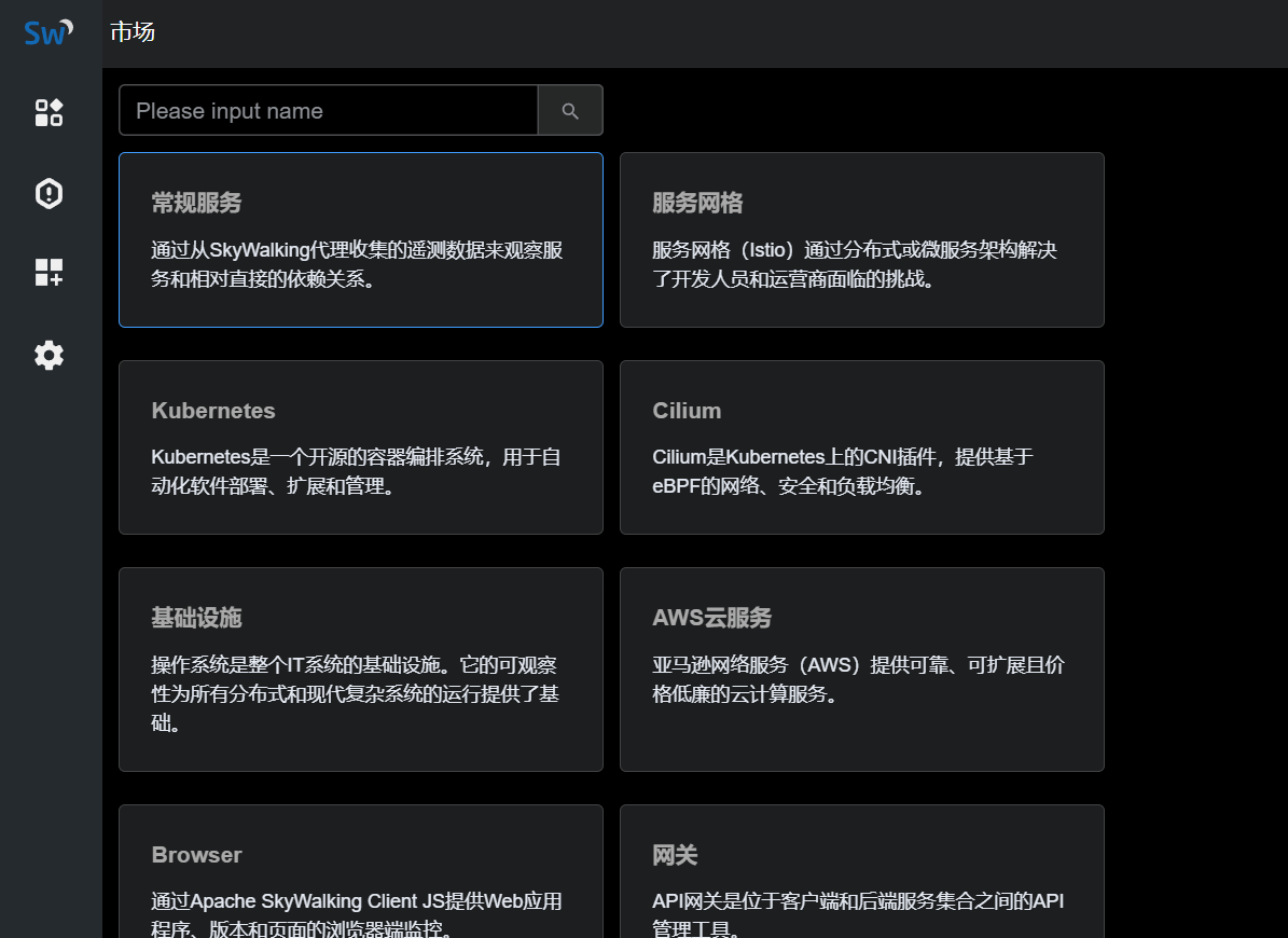 其通过 RESTful API 从 OAP 获取数据,支持图表化展示与交互式筛选,提供 Web 控制台,展示服务拓扑、调用链路、实时指标、告警信息等。