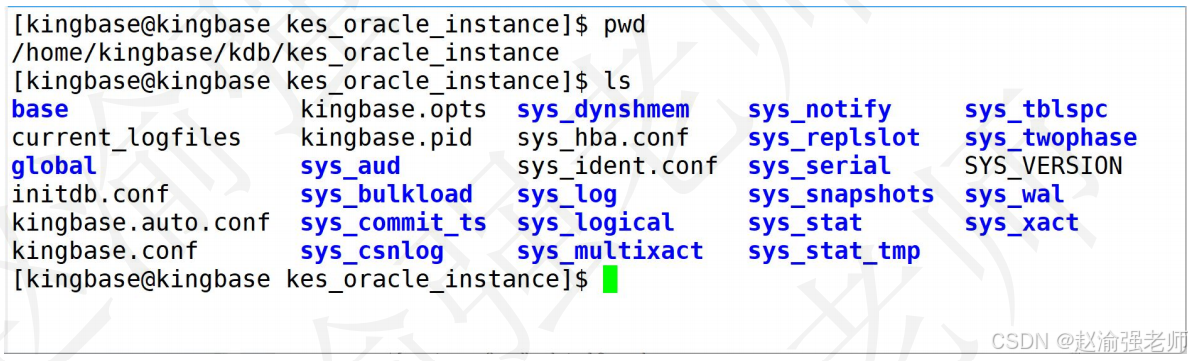 数据库实例初始化的时候会创建一个目录,通常都会在系统配置相关的环境变量$KINGBASEDATA来表示。当数据库初始化完成后,会在这个目录生成相关的子目录以及一些文件。下图就是金仓数据库的物理结构: