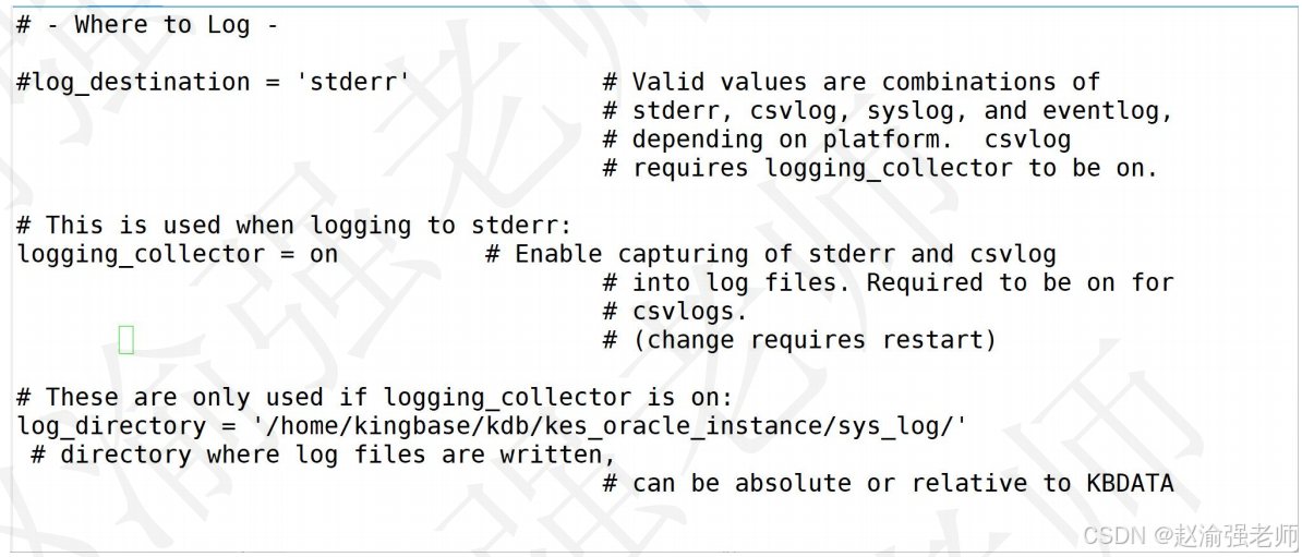 在默认的情况下,运行日志没有开启。通过查看主kingbase.conf文件的配置可以看到相关的参数设置,开启后会自动生成该日志文件。运行时日志一般是记录数据库服务器与数据库的状态,比如各种错误信息、定位慢查询SQL、数据库的启动关闭信息、发生检查点过于频繁等的告警信息等等。该日志有.csv格式和.log格式,建议使用.csv格式。因为.csv格式一般会按大小和时间自动切割。sys_log是可以被清理删除、压缩打包或者转移,同时不影响数据库的正常运行。当有遇到数据库无法启动或者更改参数没有生效时,第一步就可以查看运行时日志。下图展示了主参数文件kingbase.conf中关于运行日志的配置参数。