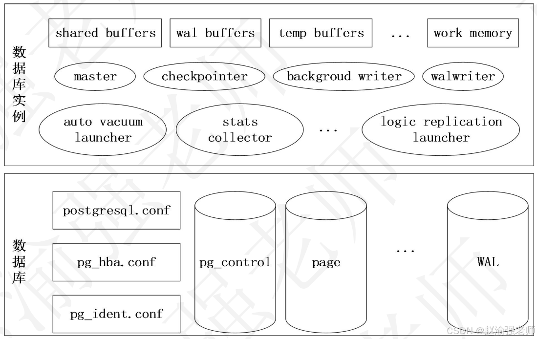 金仓数据库基于PostgreSQL开发构建,因此这里可以拿PostgreSQL来比较学习它的体系结构,这样比较容易理解,其主要结构如下图所示。