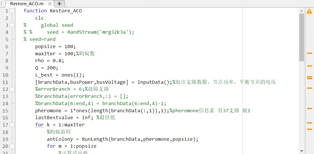 基于蚁群算法的配电网重构 MATLAB程序