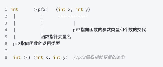 函数指针类型的重命名也是⼀样,将void(*)(int)类型重命名为pf_t