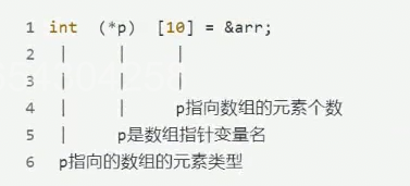 P和*结合,说明p是一个指针变量,然后指针指向的是一个大小为10个整型的数组,所以p是一个指针,指向一个数组,叫数组指针