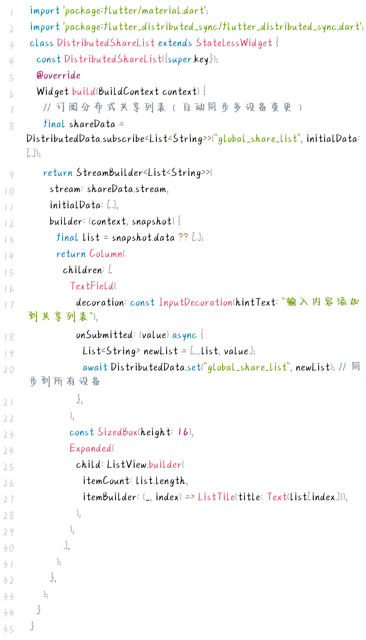 - flutter_distributed_sync:实现Flutter端分布式状态订阅与同步,保障多设备状态一致性;