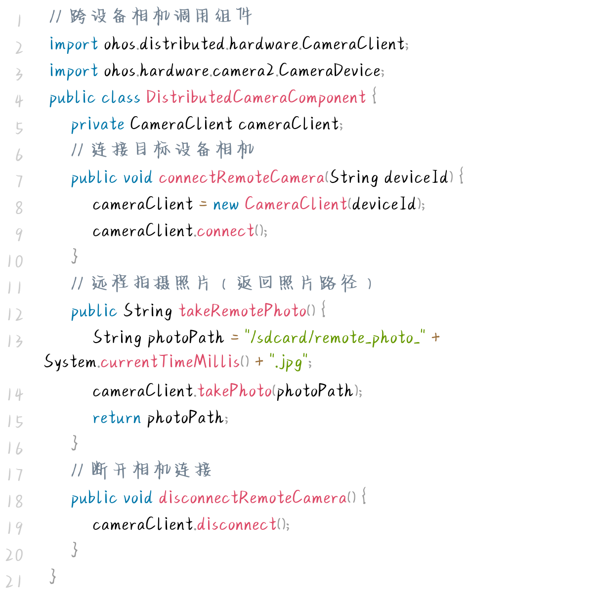 - 命名规范:分布式组件命名统一前缀"Distributed/CrossDevice",如 DistributedCameraComponent;
