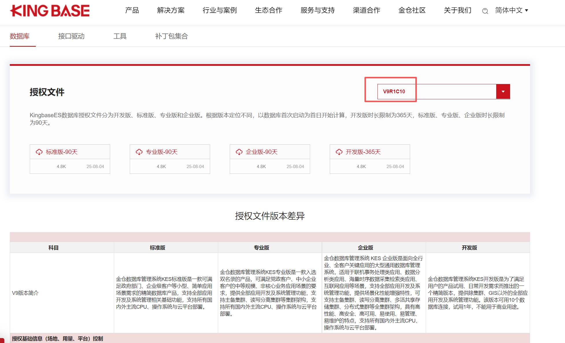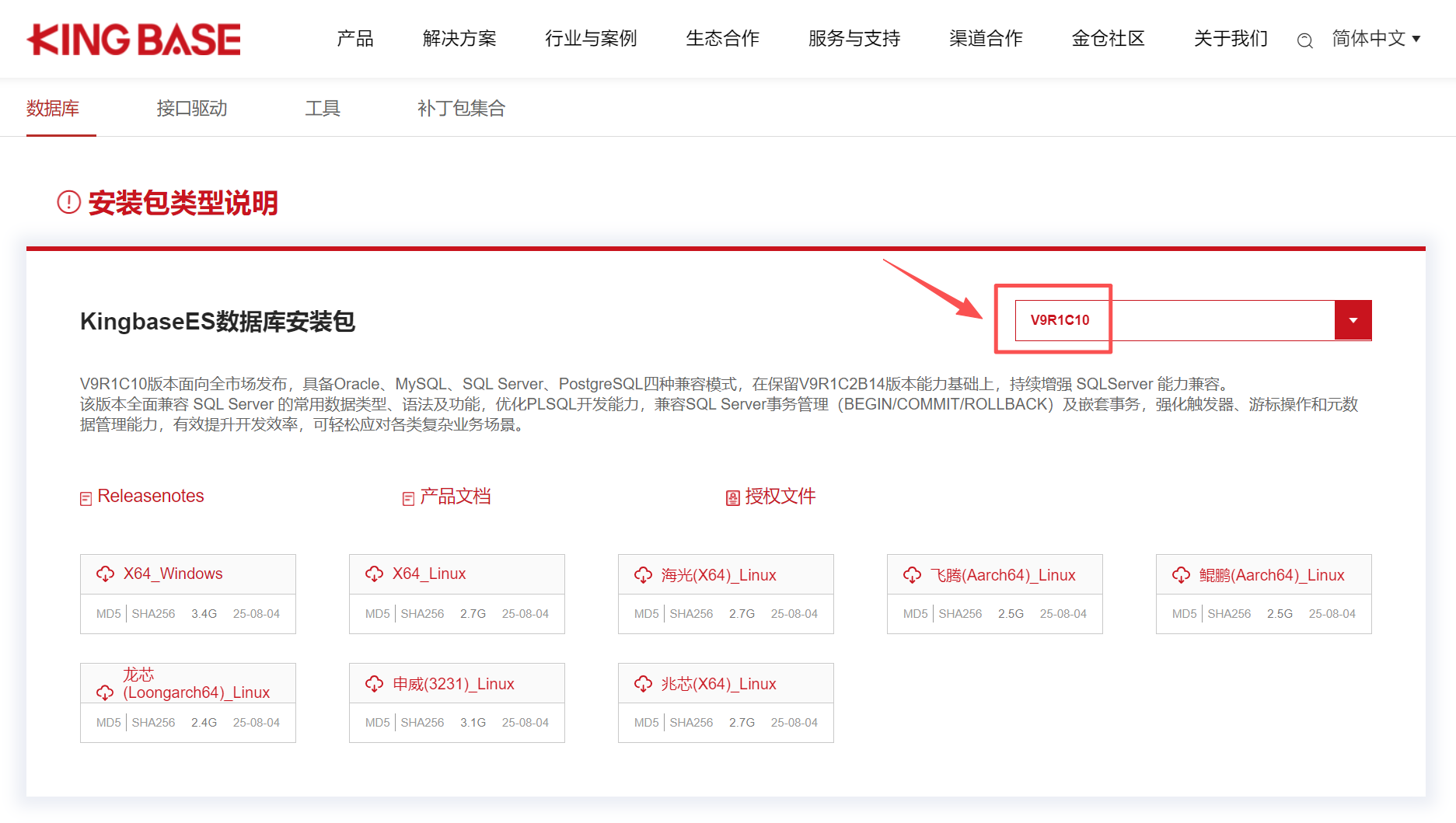 访问电科金仓官网(KES-电科金仓官网),KingbaseEs数据库安装包(Oracle兼容)-->V9R1C10(Oracle兼容版) --> X64 Linux-->下载KingbaseES_V9R001C010B0003_Lin64_install.iso镜像,如下所示: