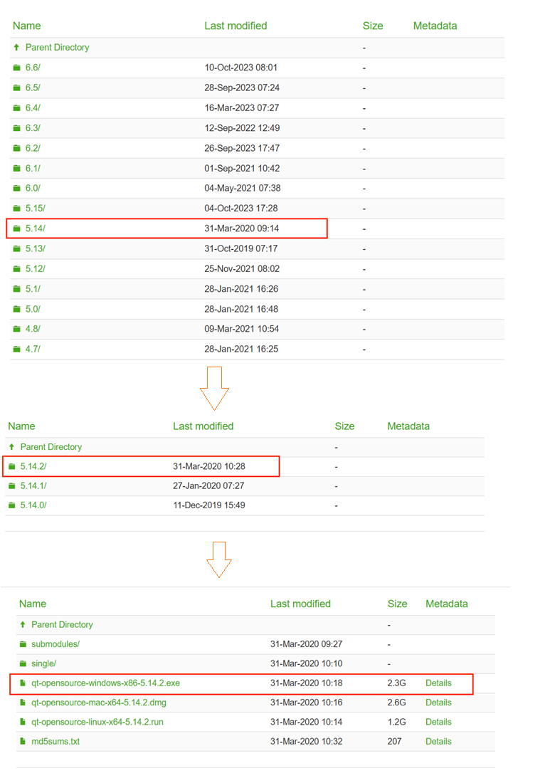 本次下载以5.14版本为例来作为讲解,找到5.14版本选择5.14.2(这里选择哪一个都可以)点击,找到.exe文件下载到本地