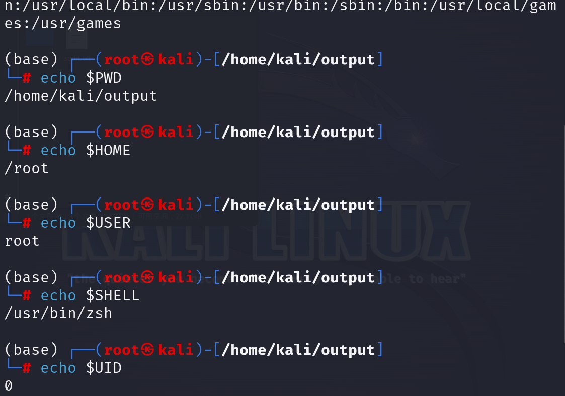 - SHLVL,记录当前shell的"嵌套层数",直接打开终端是第一层shell,SHLVL=1;若在当前shell再执行bash打开新一层shell,那么$SHLVL=2。PHP执行命令默认是1