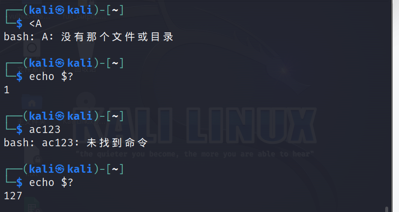 - 每个系统命令执行错误,都有各自的值。比如ls,值为2;cat,值为1