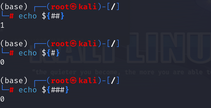 - {#..}可以得到数字,当#被禁用,可以使用?代替,当前命令正确执行执为0,报错执行分情况有不同数字,例如<重定向错误,值为1。