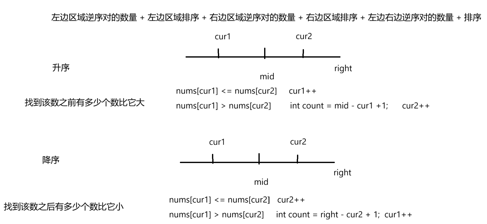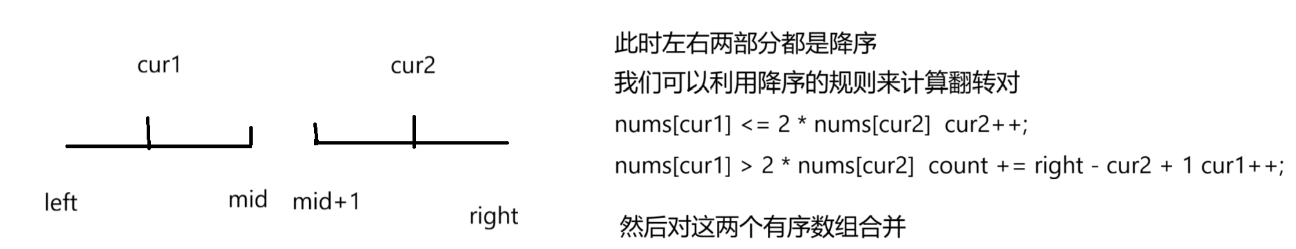while(cur1 <= mid && cur2 <= right) {