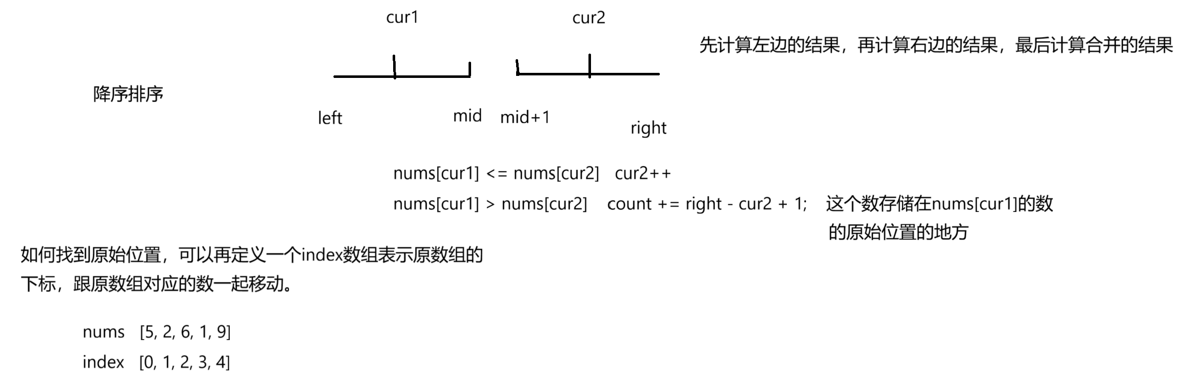count += mergeSort(nums, mid + 1, right);
