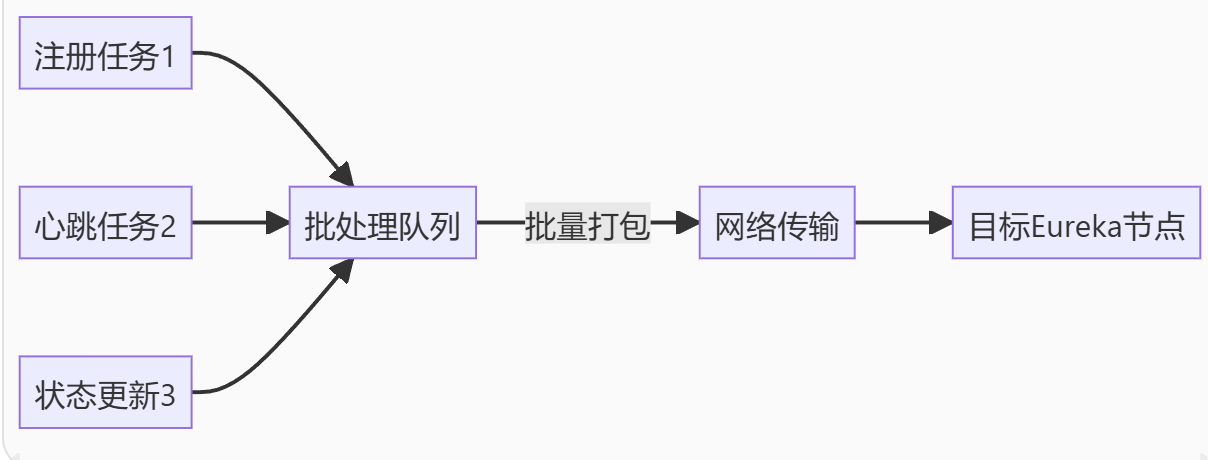 可以看到,Eureka Server 使用了一个 批处理调度器 batchingDispatcher(TaskDispatcher<String, ReplicationTask>),它负责将多个任务收集起来,然后批量发送,以减少网络开销。