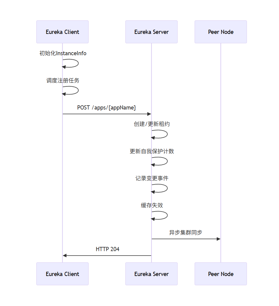 在 Eureka 中,当服务实例向一个 Eureka Server 节点注册时,该节点会将注册信息同步到集群中的其他节点(peer nodes),**集群同步(peer replication)**是 Eureka 保证高可用和最终一致性的关键机制
