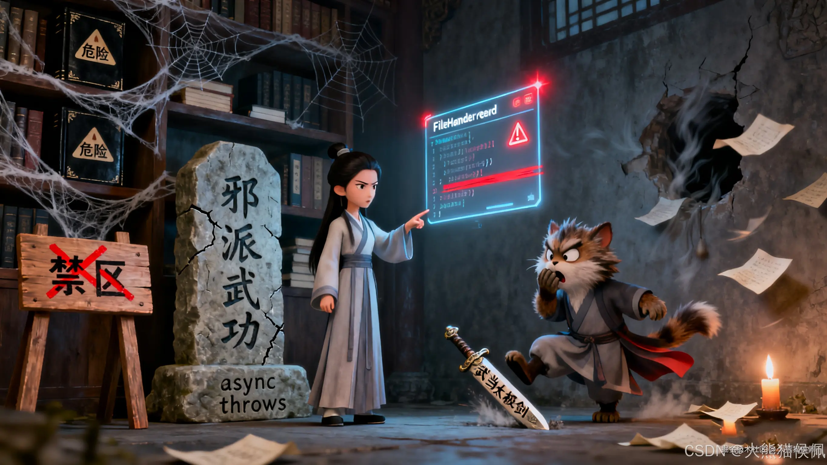 赵敏突然收起笑容,语气严肃起来:"不过这'通脉奇功'也有禁区 ------ 带async(异步)或throws(抛错)的方法,就像练了'邪派武功',键路径碰不得,一碰就走火入魔。"