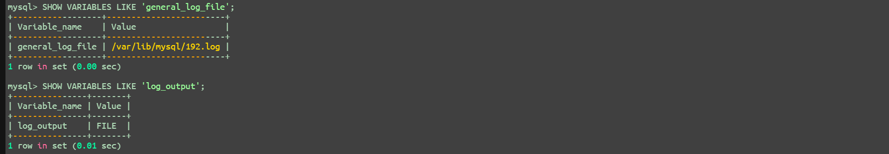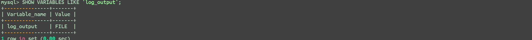 SHOW VARIABLES LIKE 'log_output';