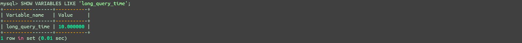 SHOW VARIABLES LIKE 'long_query_time';
