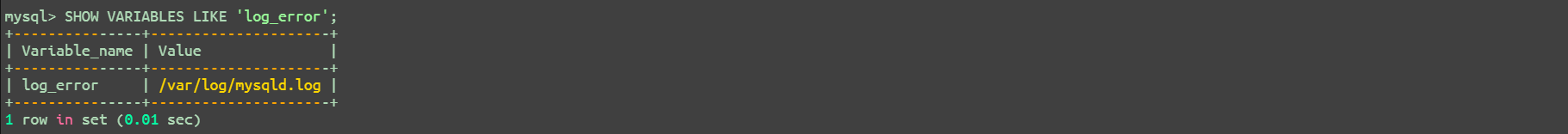 SHOW VARIABLES LIKE 'log_error';