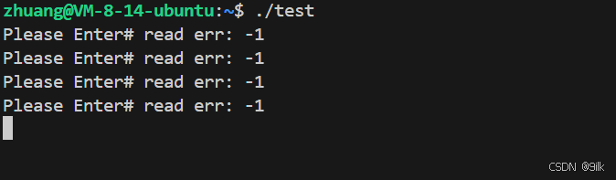 此时由于是非阻塞,我们不做输入,数据就会不就绪,就会出错返回: