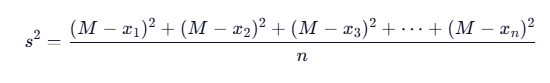 若 x 1,x 2,x 3...xn 的平均数为 M,则方差公式可表示为: