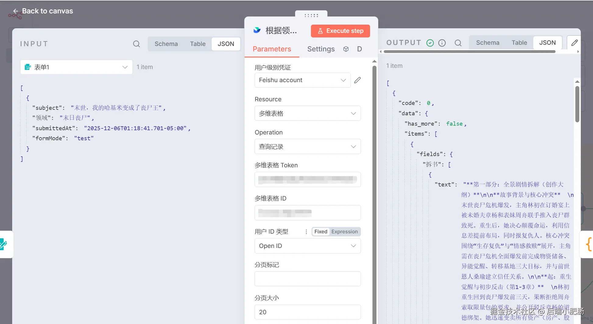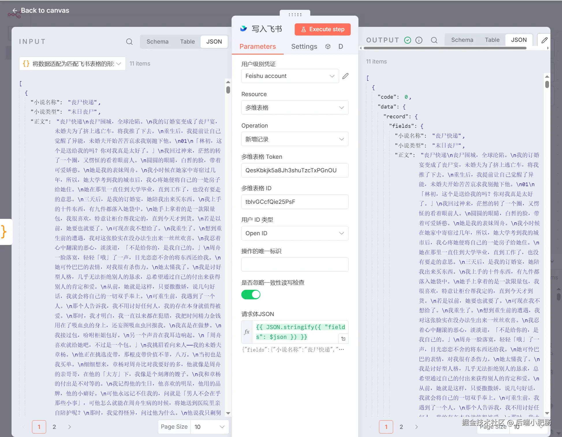 写入短篇小说到飞书多维表格的工作流如下: