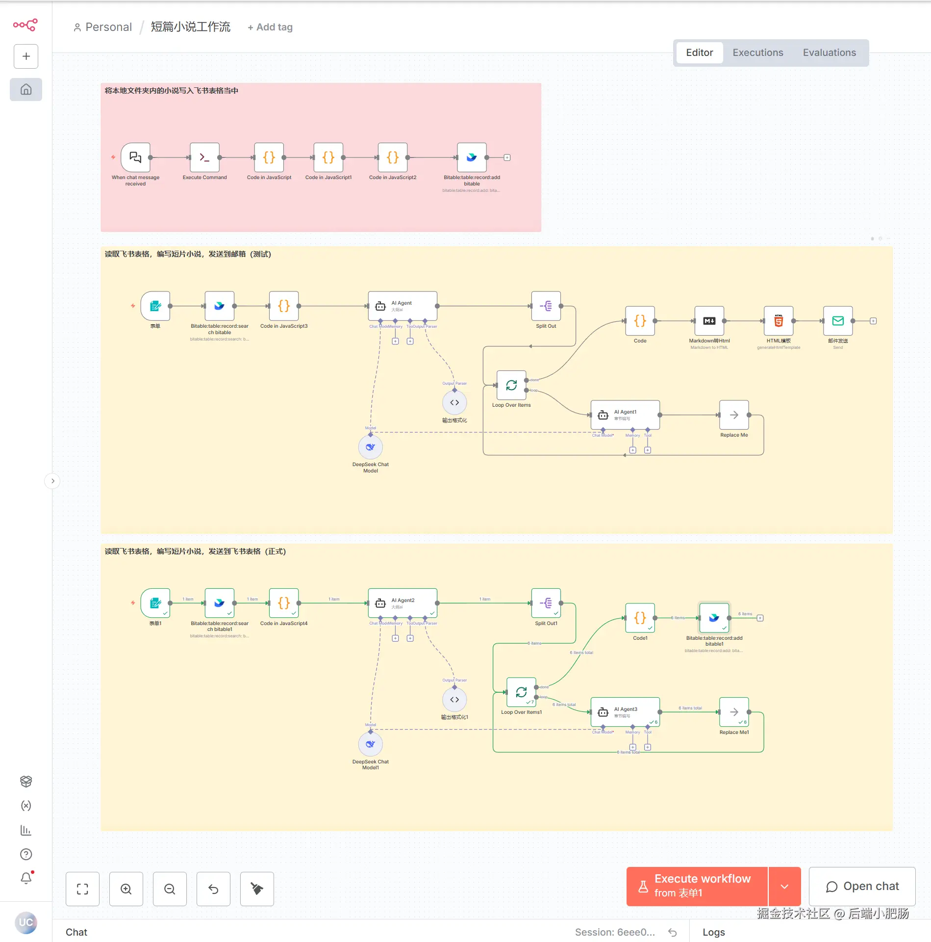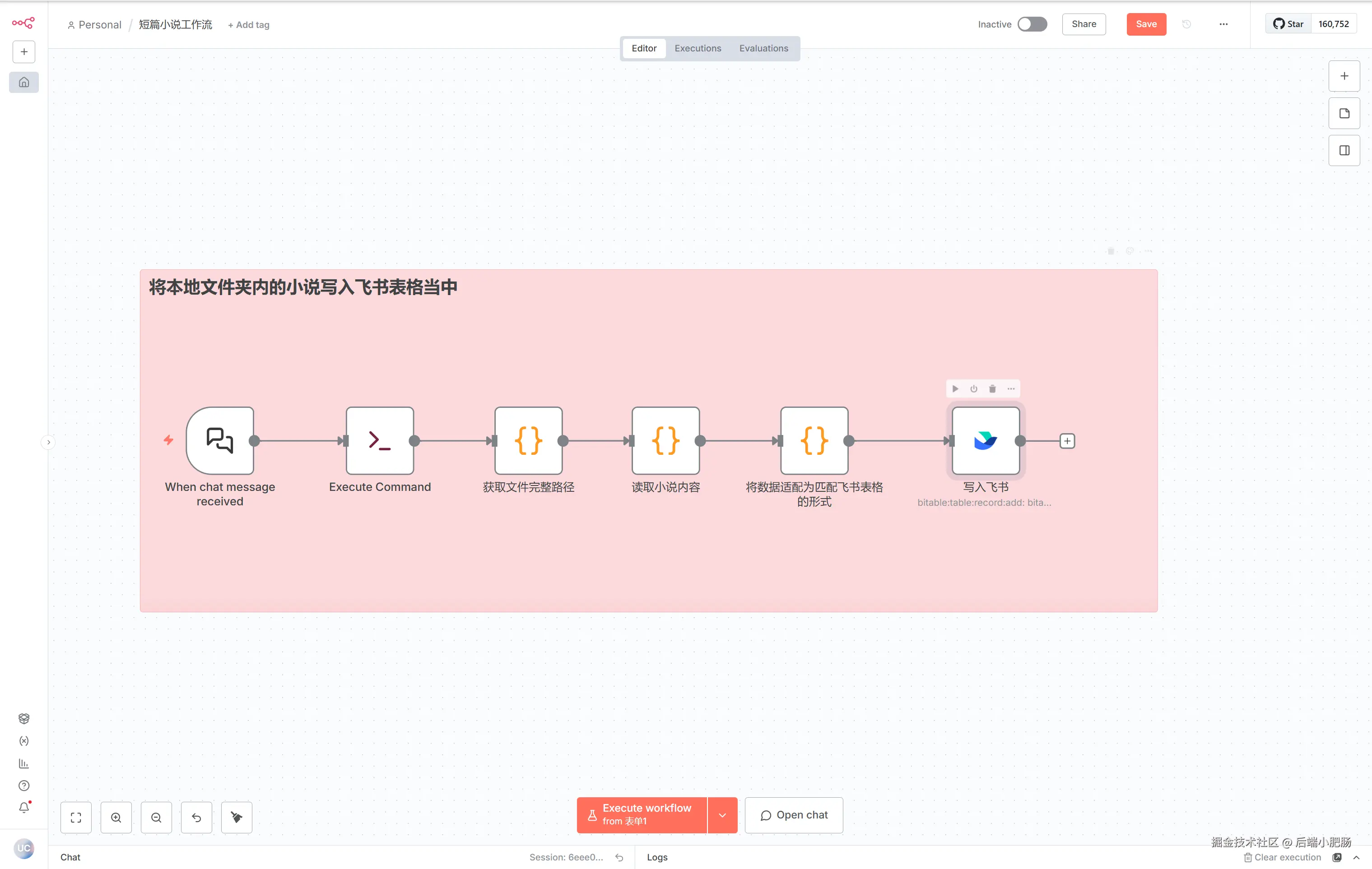 大家好,我是小肥肠!今天我们将硬核联动 n8n + 飞书 ,打造一套全自动的万字爆款小说生成 工作流 。从一个标题到万字小说一键直达飞书,全程保姆级教程,快来码住跟练,搭建属于你的无限原创小说流水线吧~