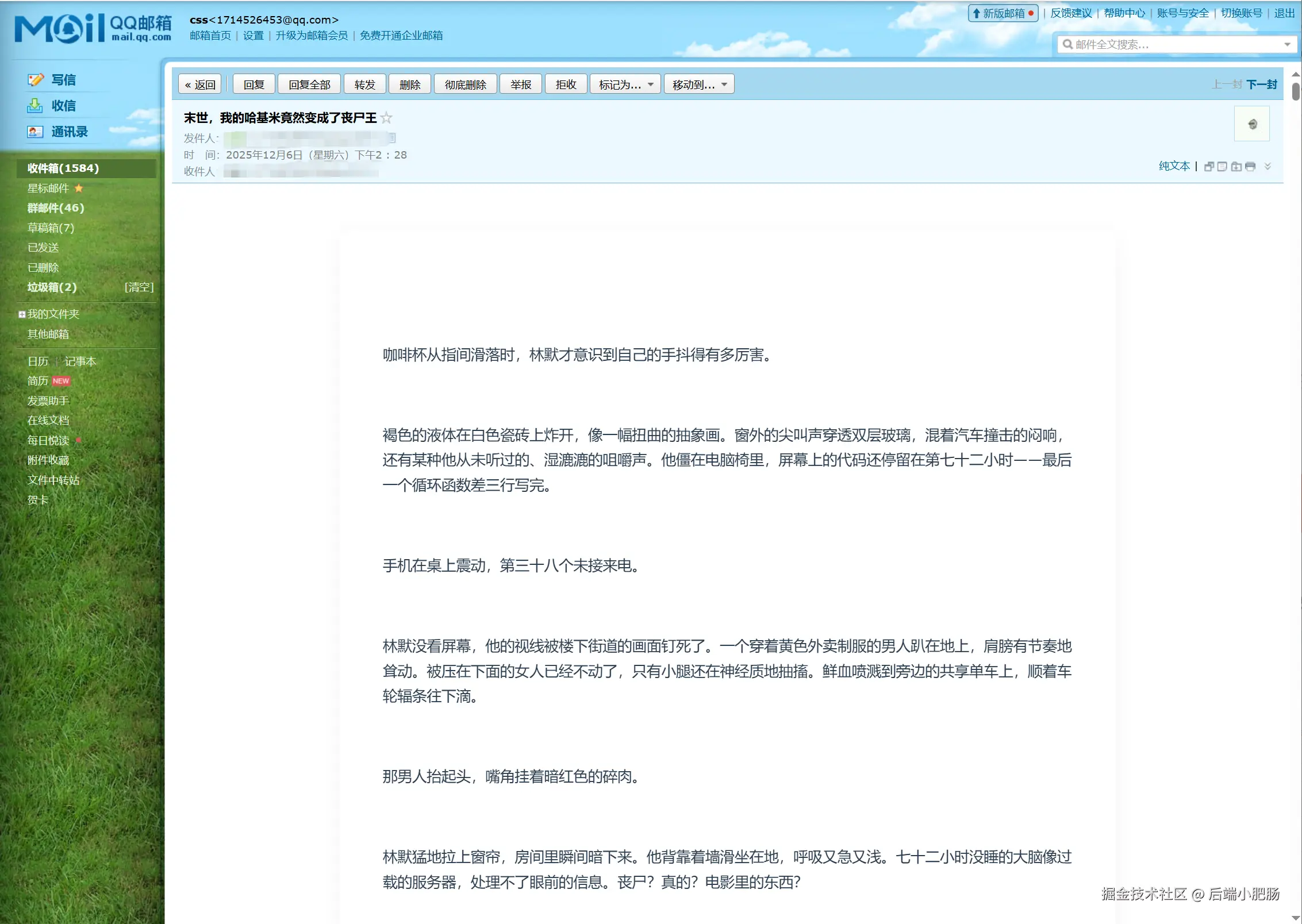第二个部分是读取飞书 表格素材库当中的内容 结合用户提供的小说主题生成万字短篇小说发送到邮箱/飞书。写入qq邮箱的工作流设计的初衷只是为了方便审阅,写一版本出来可以发给亲朋好友看看,反响比较好我们再写飞书。