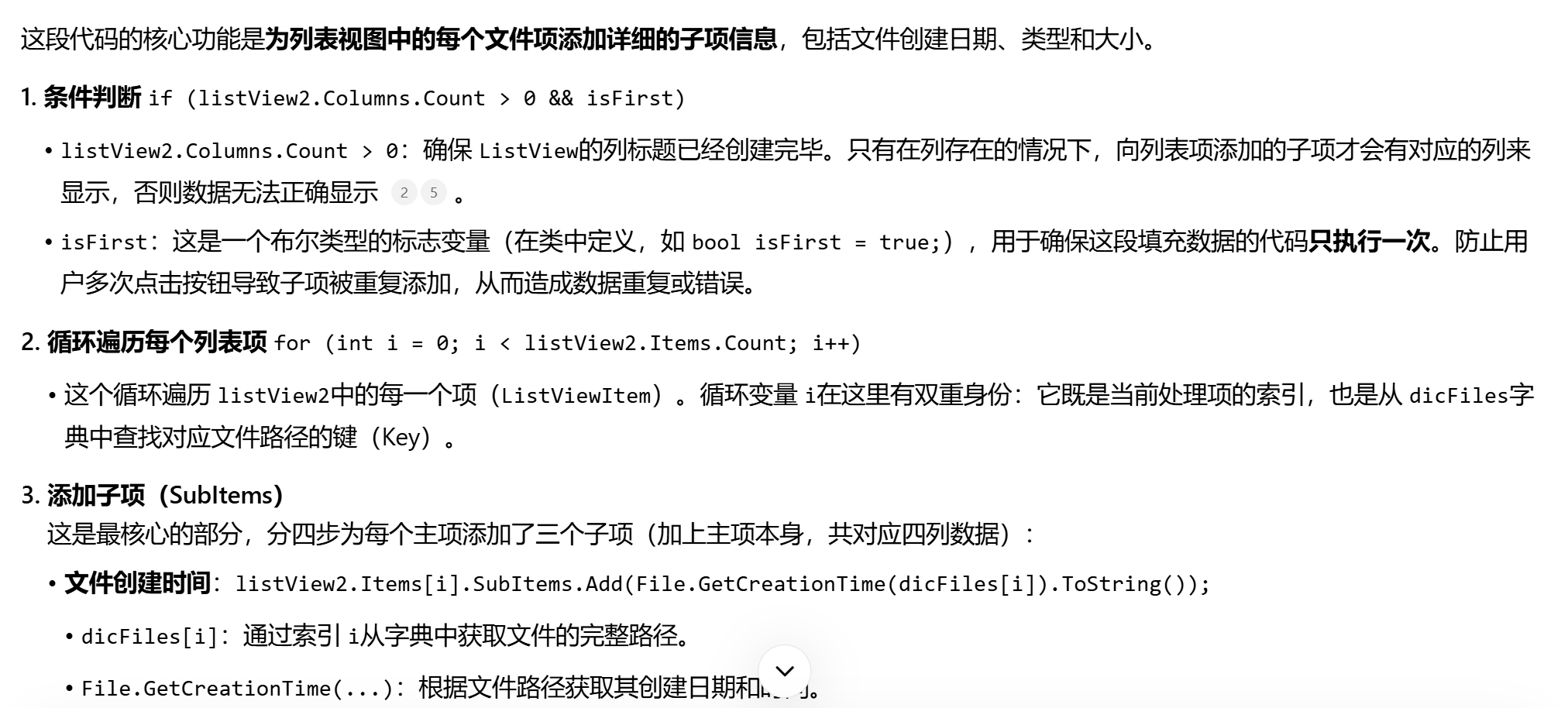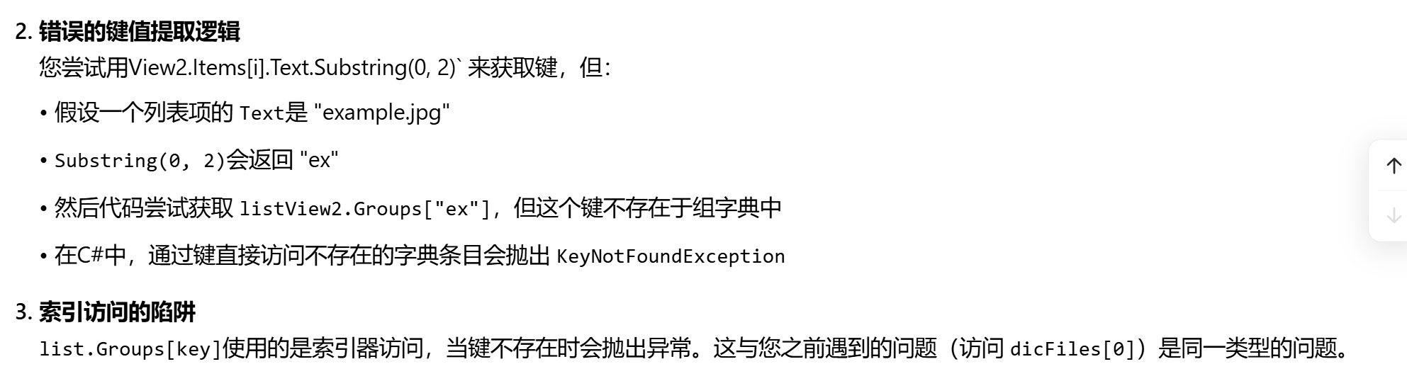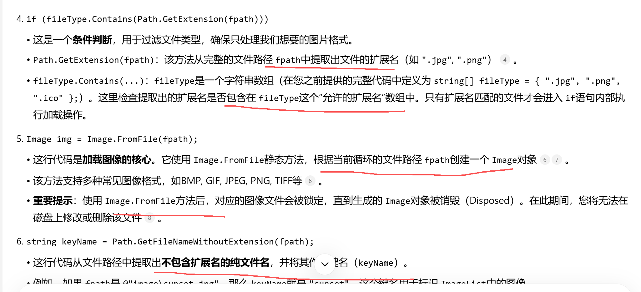 注意:循环中的索引 i与 dicFiles的键严格对应(因为填充时 i是顺序递增的),因此 dicFiles[i]能正确检索路径。如果索引 i不存在于字典中,会抛出 KeyNotFoundException,但代码中通过循环范围控制避免了这一问题