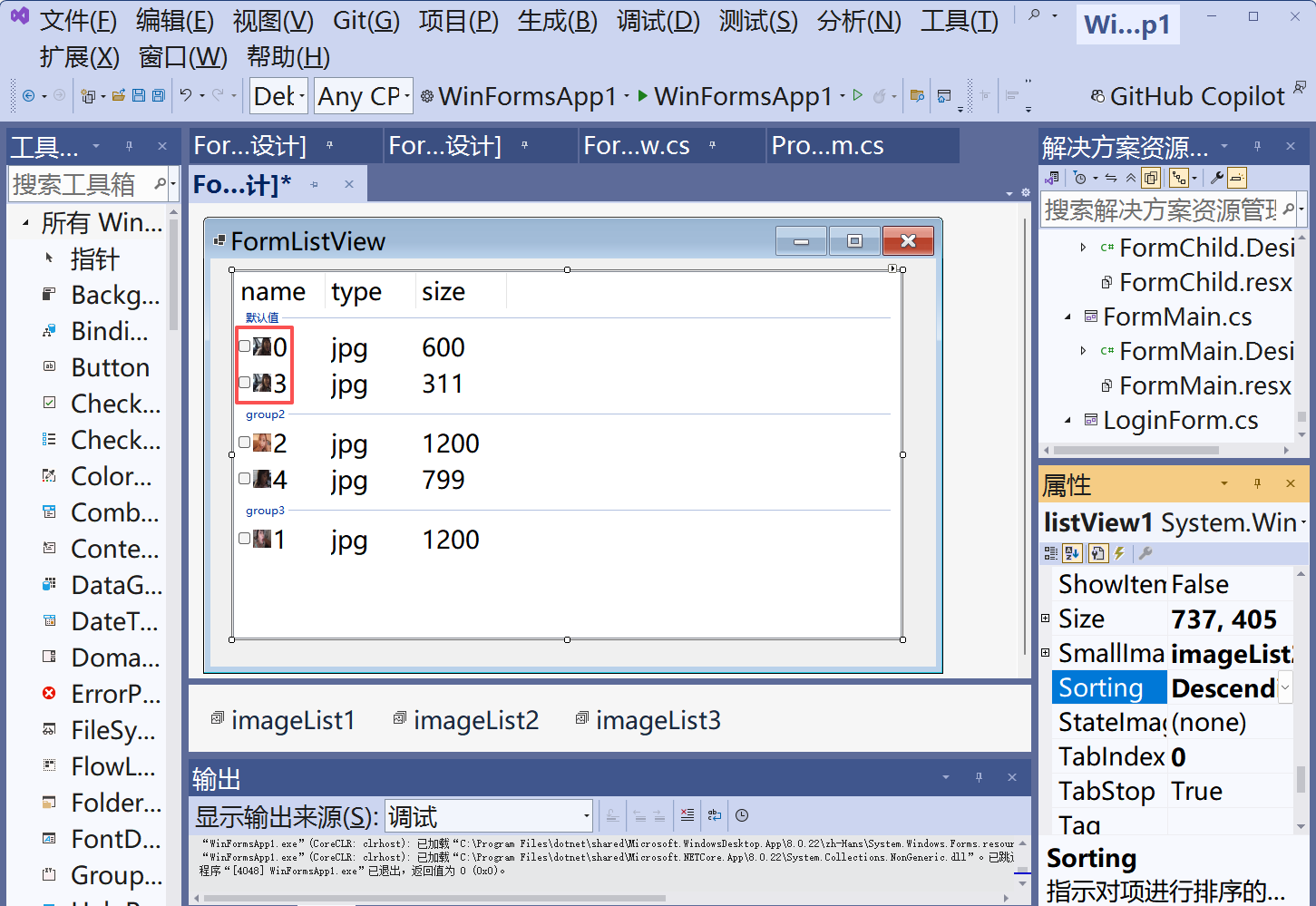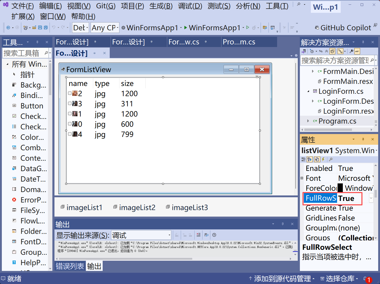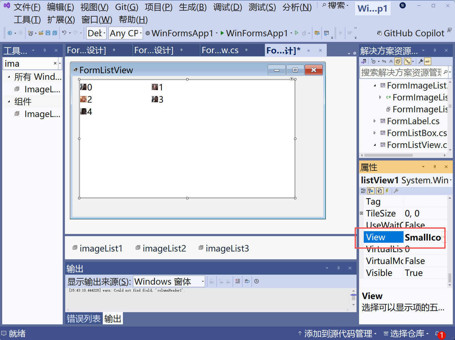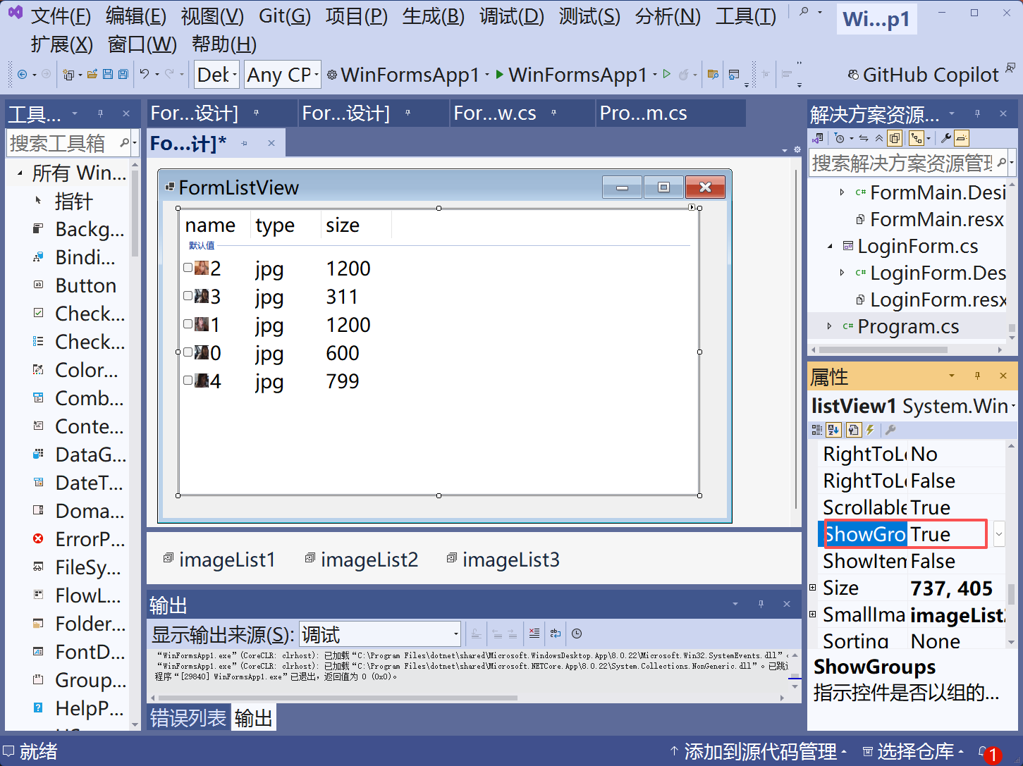 这段代码组合起来,实现了一个标准的初始化或刷新 ListView显示内容的过程:先清空旧项,然后根据数据源(这里是 imageList1)逐个创建新项并添加。