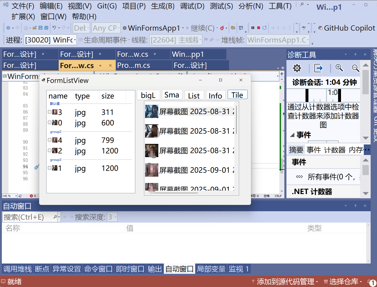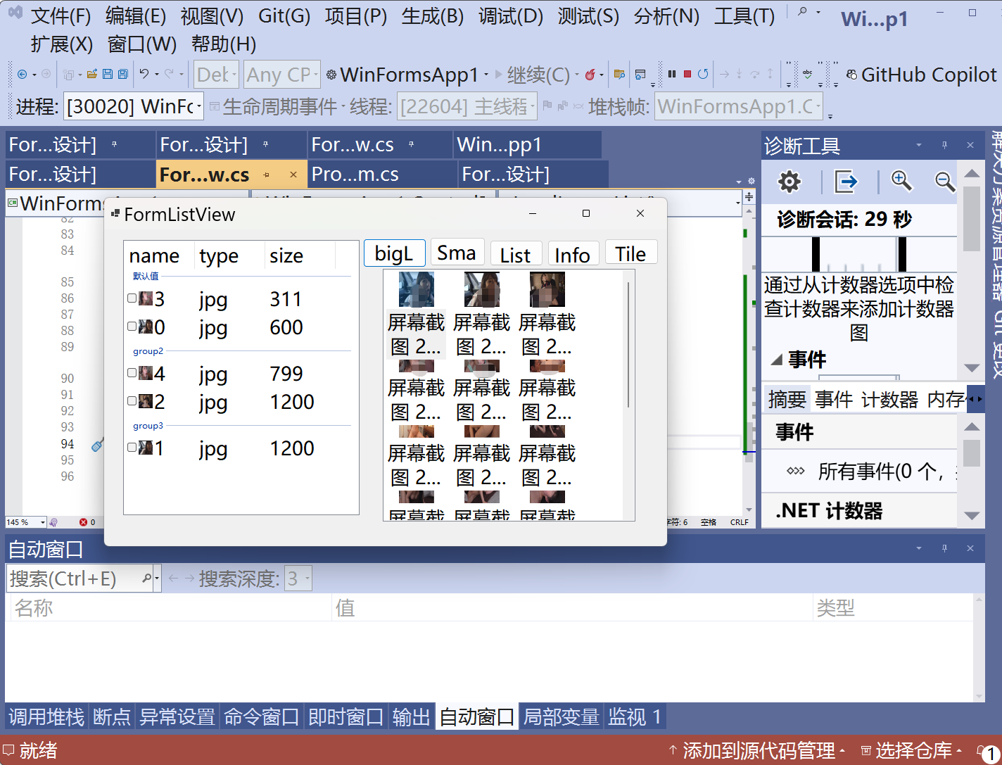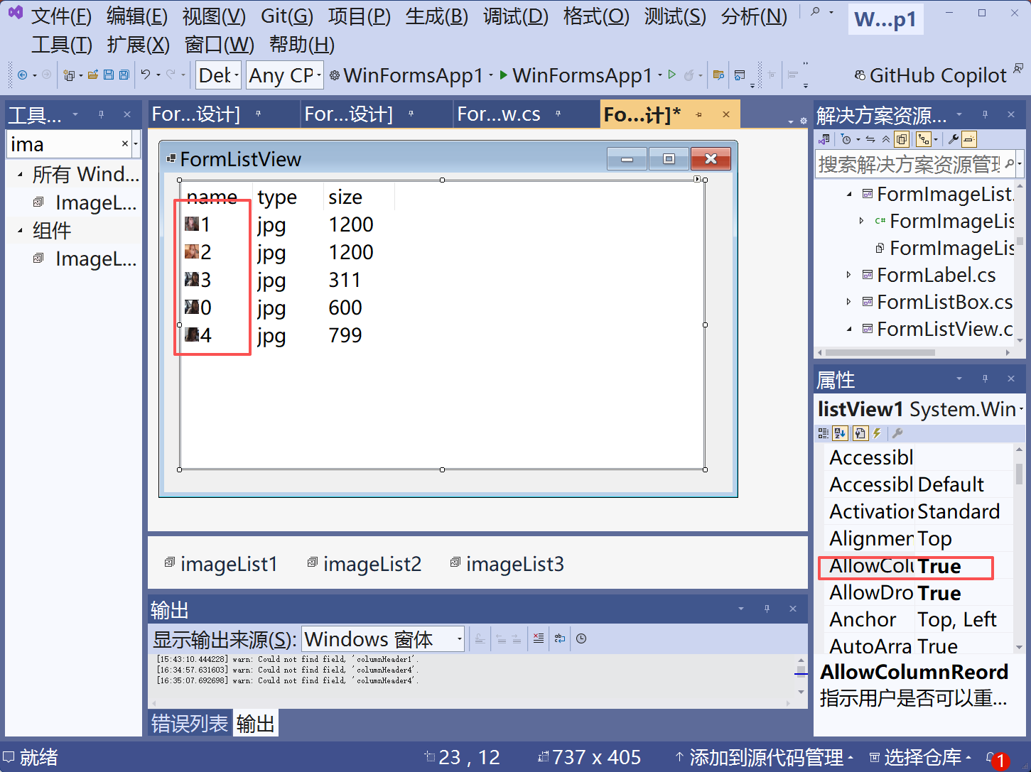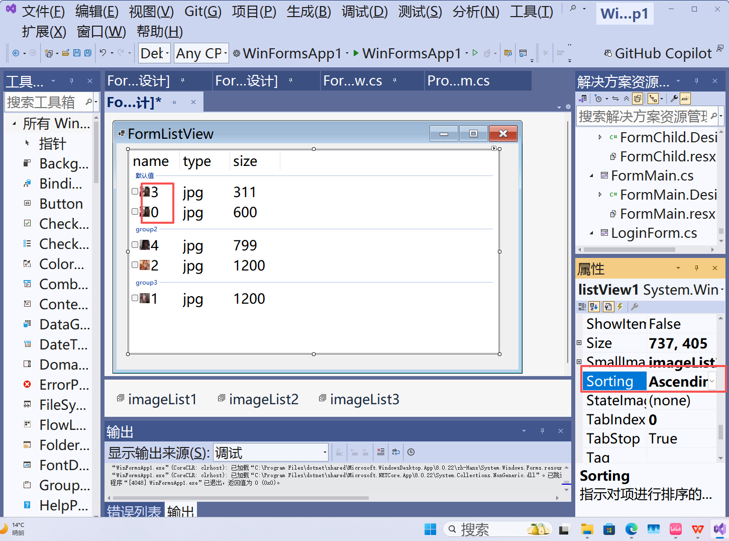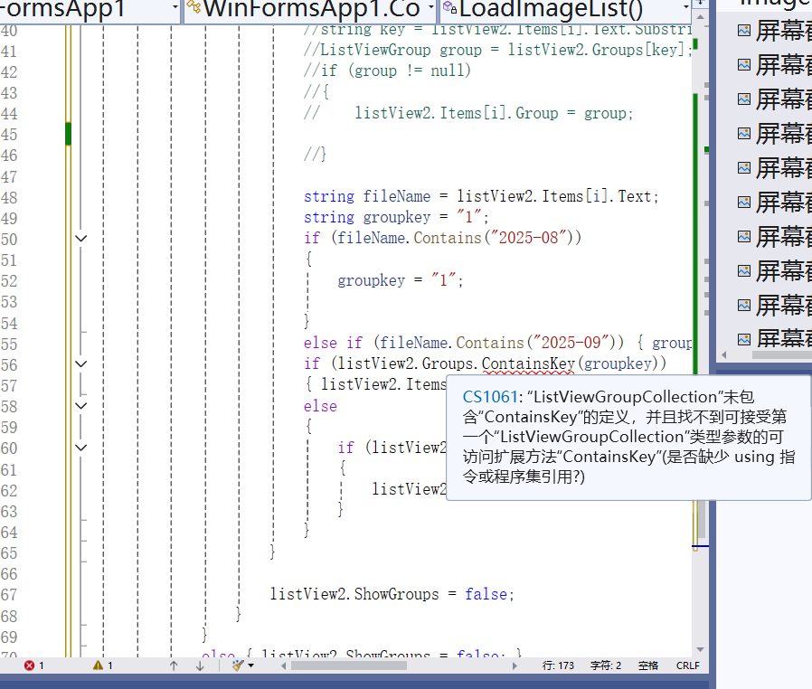 这段代码组合起来,实现了一个标准的初始化或刷新 ListView显示内容的过程:先清空旧项,然后根据数据源(这里是 imageList1)逐个创建新项并添加。