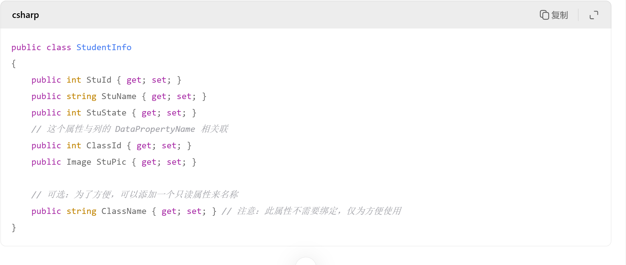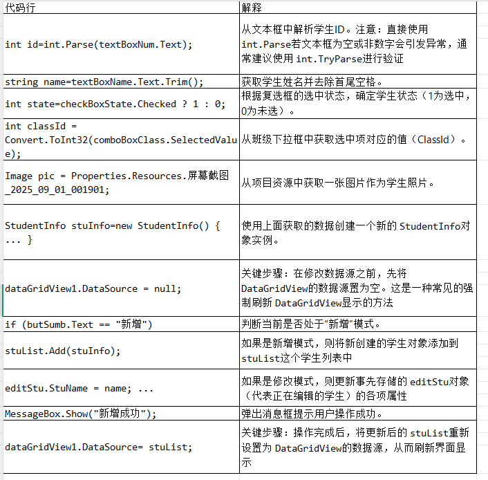 stuList.Add(new StudentInfo() { StuId = 01, StuName = "xiaoA", StuState = 1, ClassId = 1, StuPic = Properties.Resources.屏幕截图_2025_08_04_000637 });