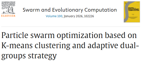 1\] Fan Y, Tian D, Xu Q, et al. Particle swarm optimization based on K-means clustering and adaptive dual-groups strategy\[J\]. Swarm and Evolutionary Computation, 2026, 100: 102226. ### 5.代码获取 xx ### 6.算法辅导·应用定制·读者交流 xx